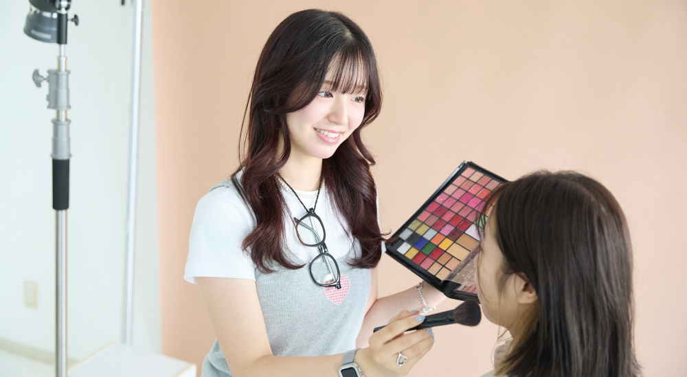 師事していたアーティストから独立し、昨年デビューしました。ファッション雑誌やテレビ番組などの現場で、モデルさんや俳優さんにヘアメイクをしています。スピーディで変化に富んだ現場で働くのは、刺激的でやりがいがあります。
