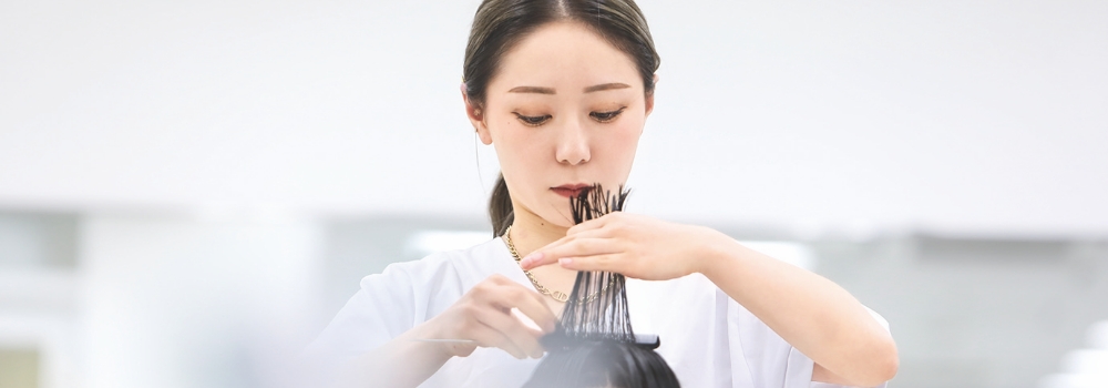 「多才な美容師」がめざせるカット、カラーなどを学ぶ授業を通して、美容師国家試験の受験に備えます。また、カリキュラムには、サロンで役立つ実践スキルとして、アイラッシュやまつ毛カールも学ぶことができます。