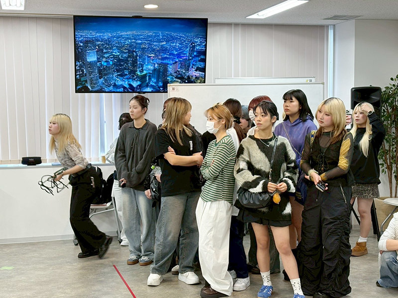 ヘアメイクアーティストコース2年生のE-コレウォーキングレッスンの様子です。
